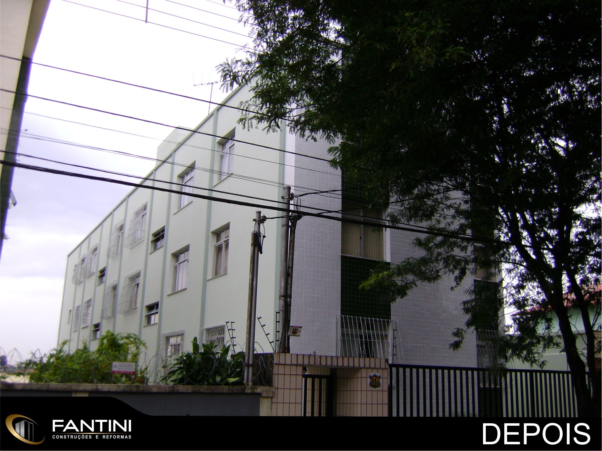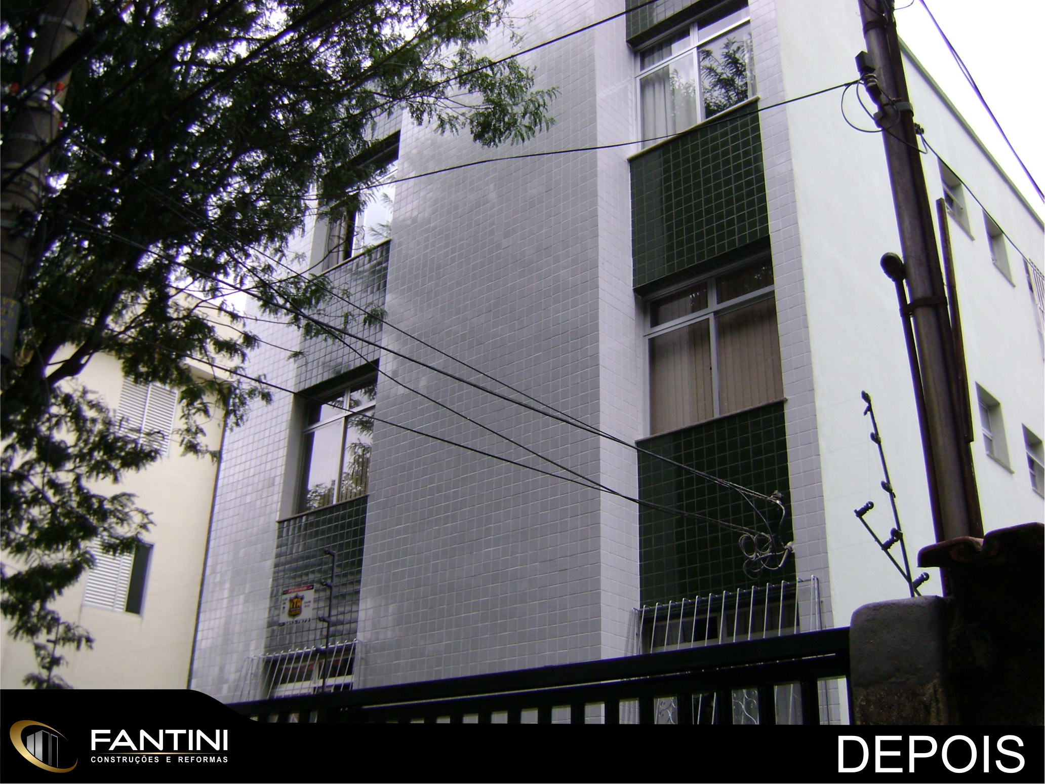 serviço: Revestimento de fachada frontal com cerâmica Eliane e pintura das fachadas laterais e fundo.