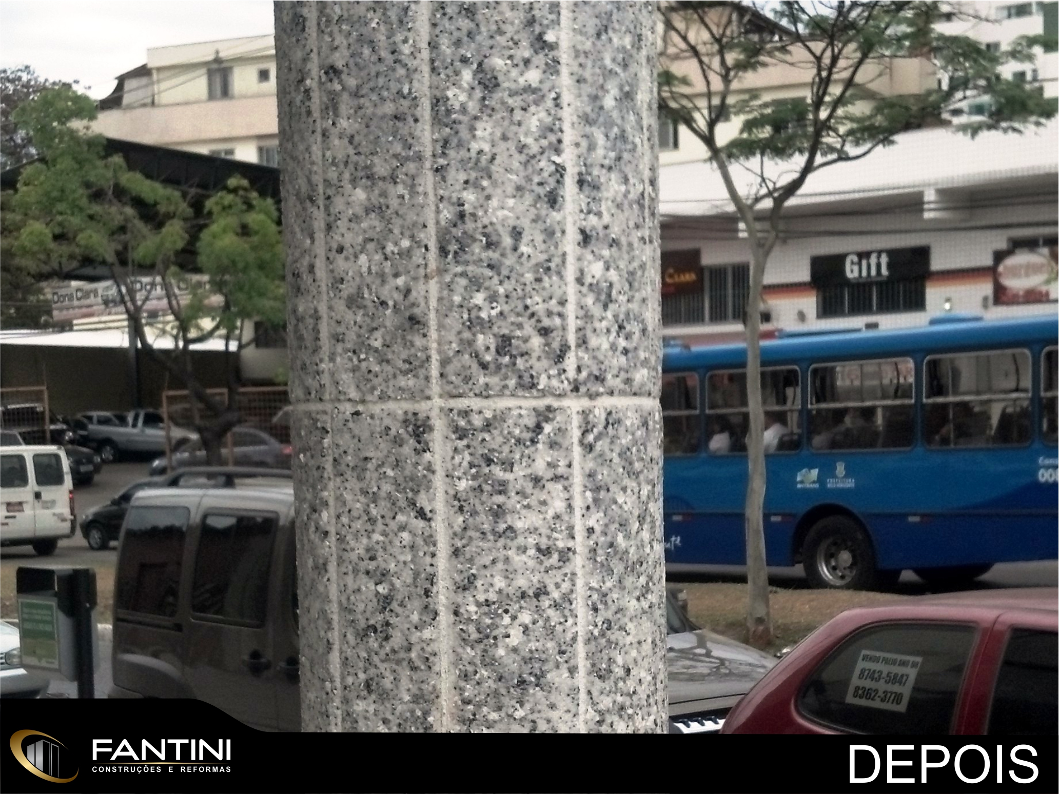 serviço: Revestimento de pilares e fachadas em Ecogranito.