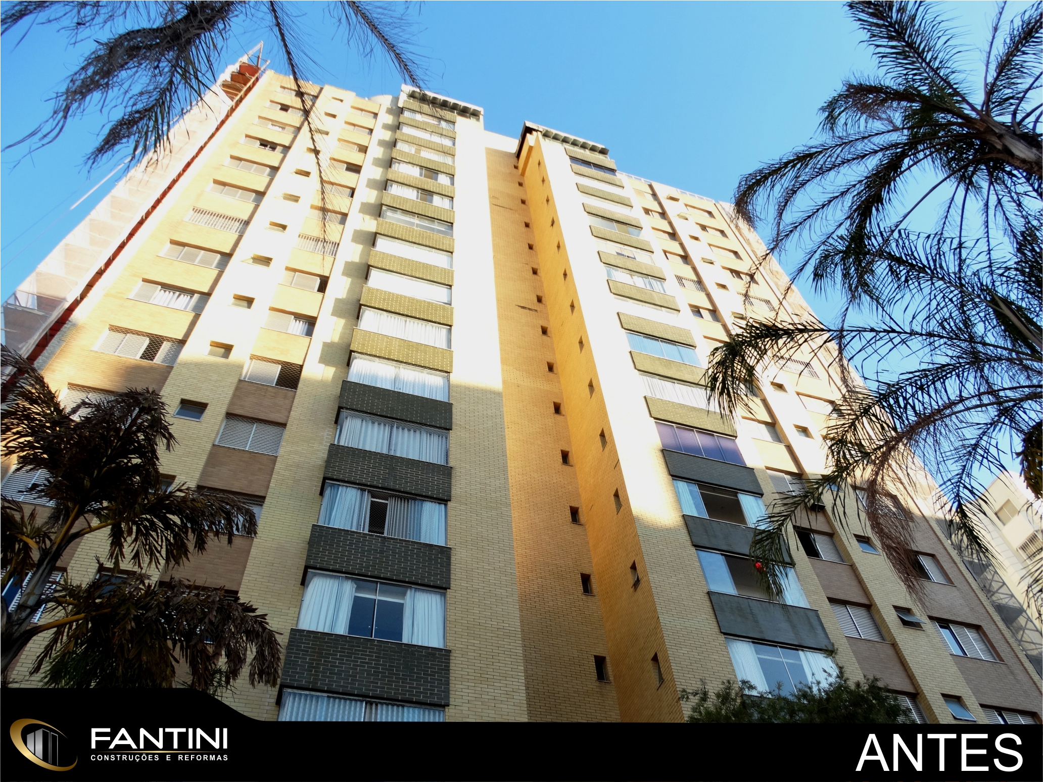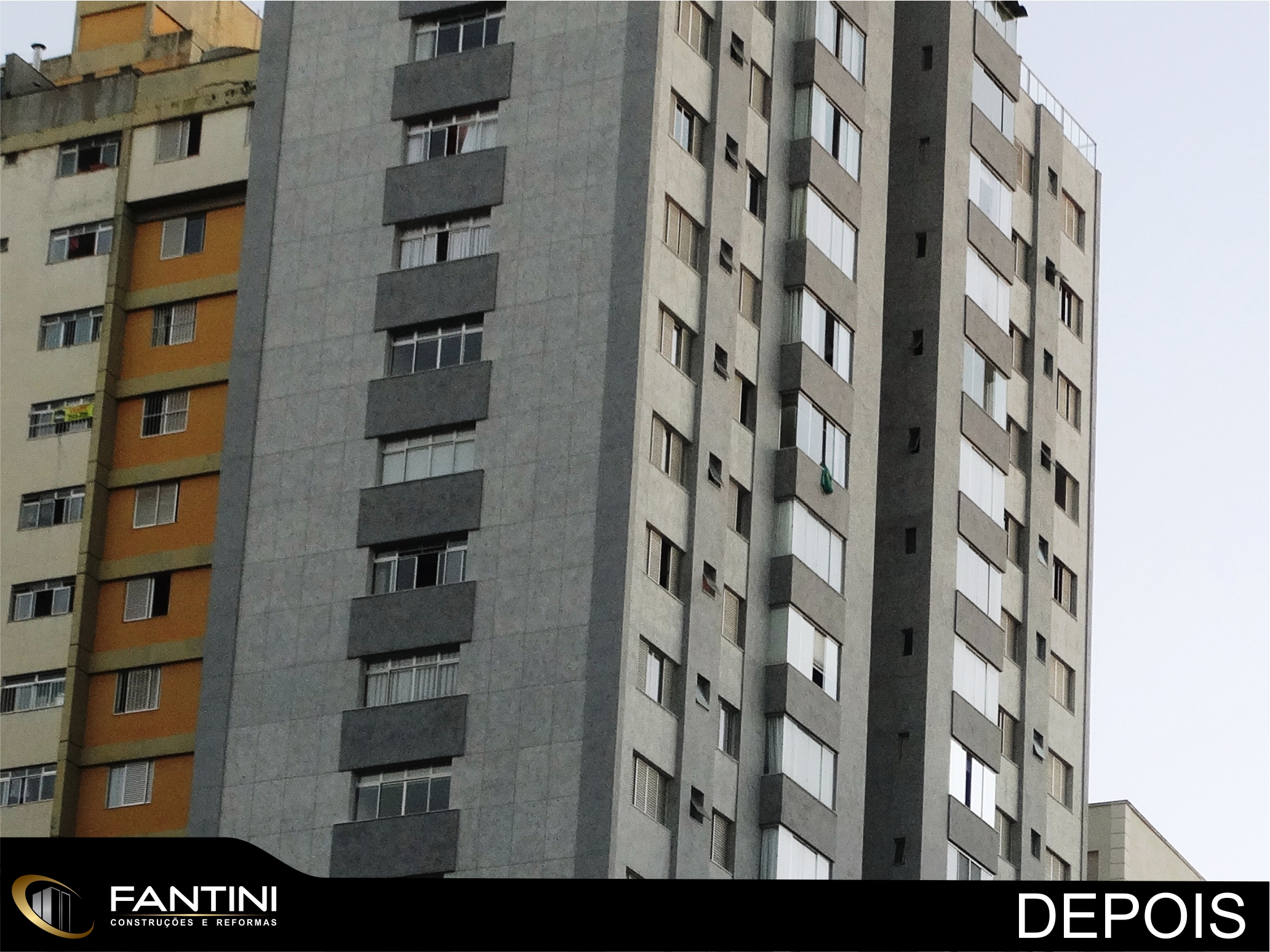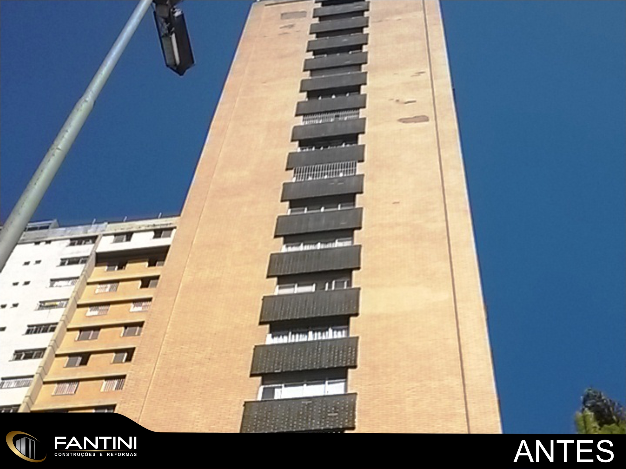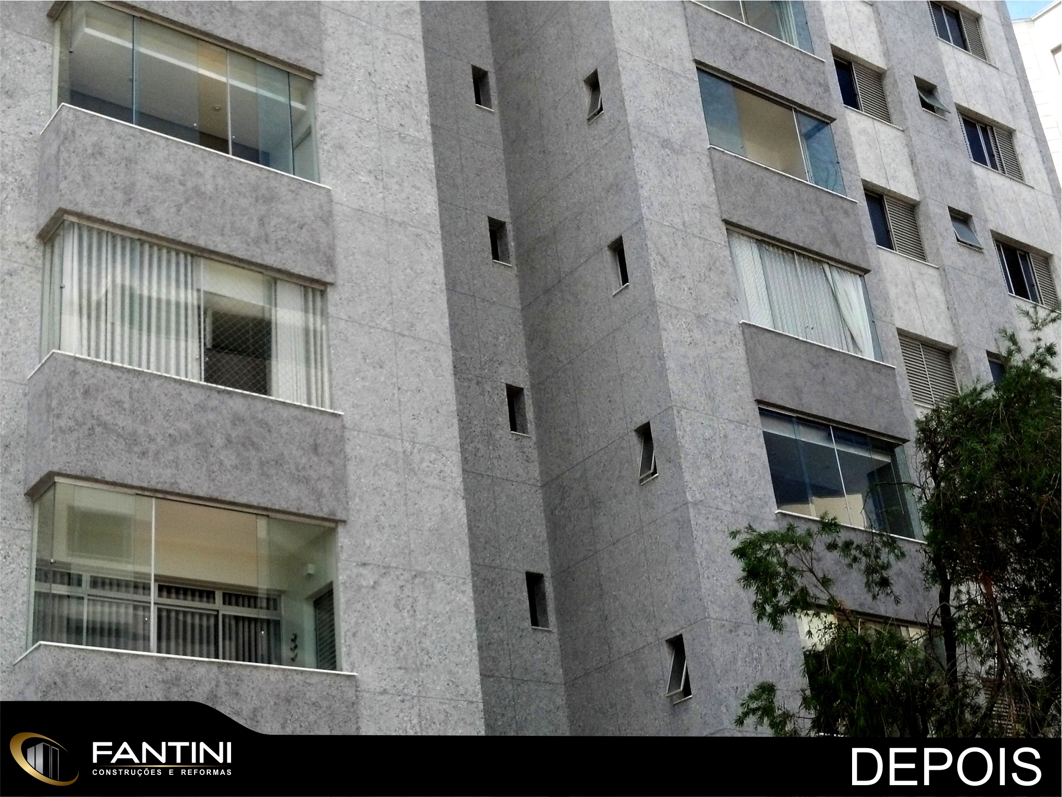 serviço: Reforma completa de fachada predial com remoção total de cerâmica e aplicação de novo revestimento Ecogranito, impermeabilização de pilotis, construção de novo sistema hidráulico do prédio e reforma da entrada do prédio.